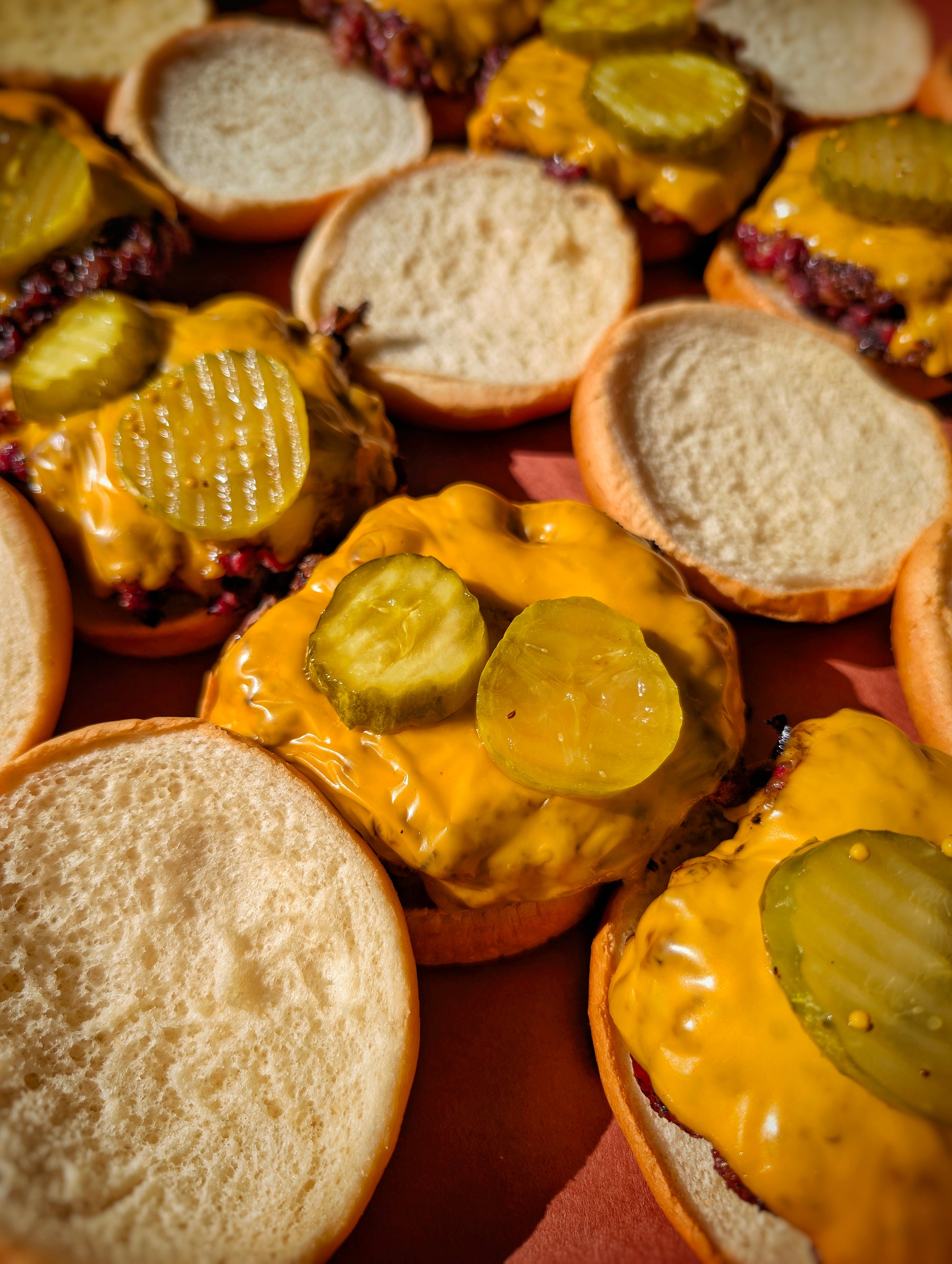 8 BBQ dishes: Chicken Wings, Cheeseburgers, Pork Belly, Lamb Ribs, Pulled Pork, Pulled Lamb, Brisket. Hanger Steak